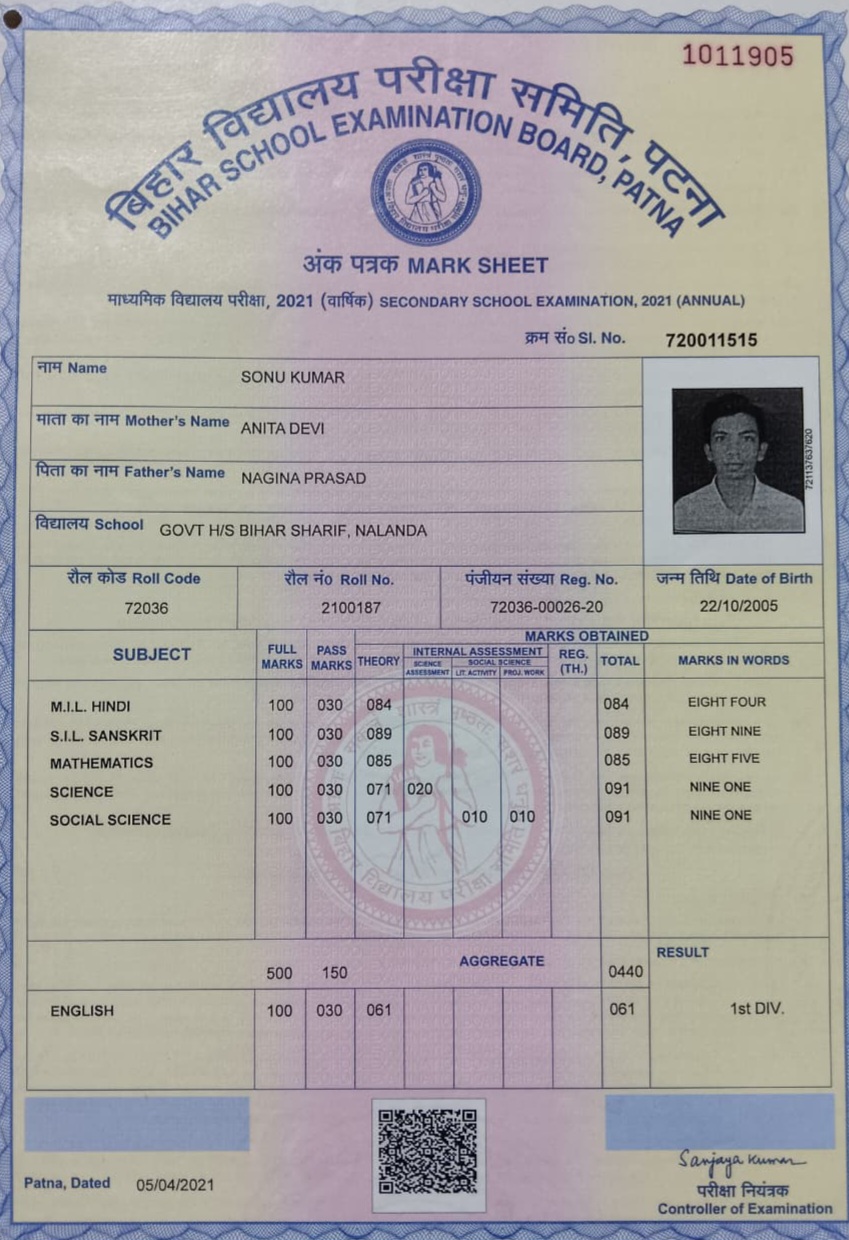 | Exam | Full Marks | Pass Marks | Marks Obtained |
