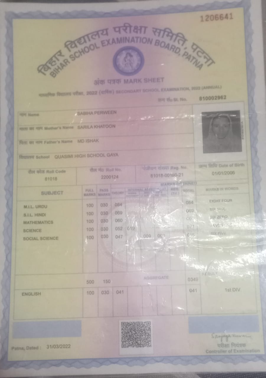 | Exam | Full Marks | Pass Marks | Marks Obtained |