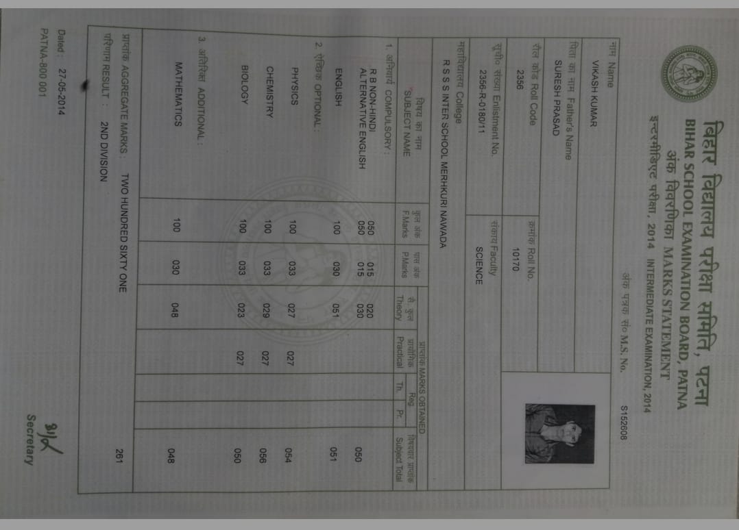 | Exam | Full Marks | Pass Marks | Marks Obtained |