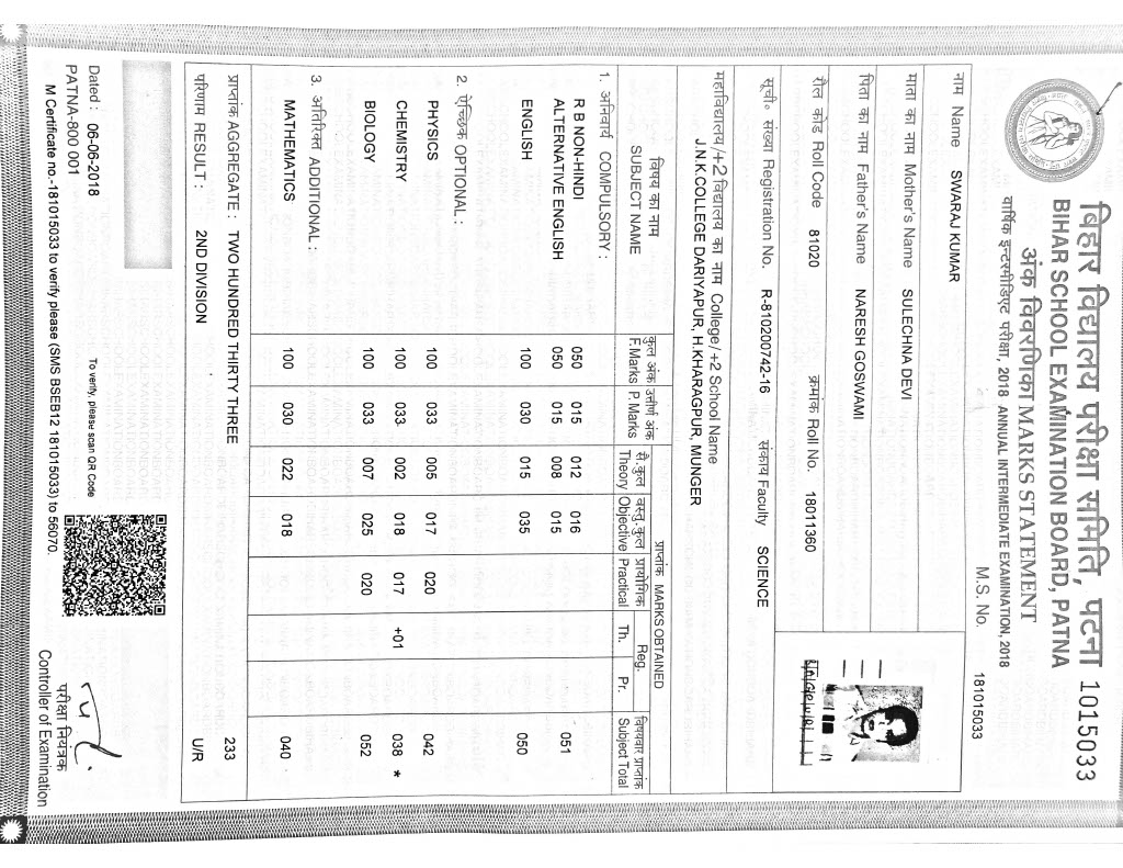 | Exam | Full Marks | Pass Marks | Marks Obtained |