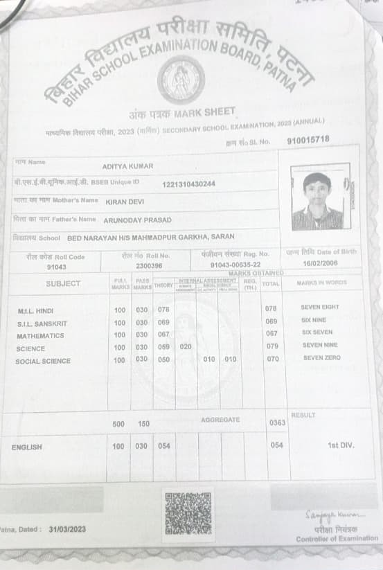 | Exam | Full Marks | Pass Marks | Marks Obtained |