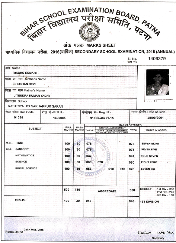 | Exam | Full Marks | Pass Marks | Marks Obtained |