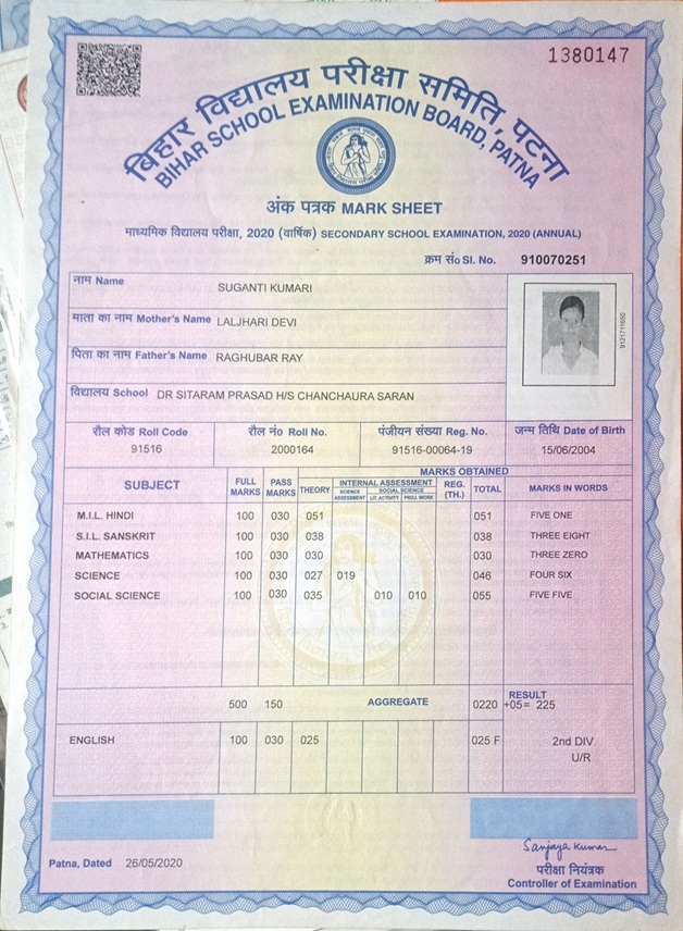 | Exam | Full Marks | Pass Marks | Marks Obtained |