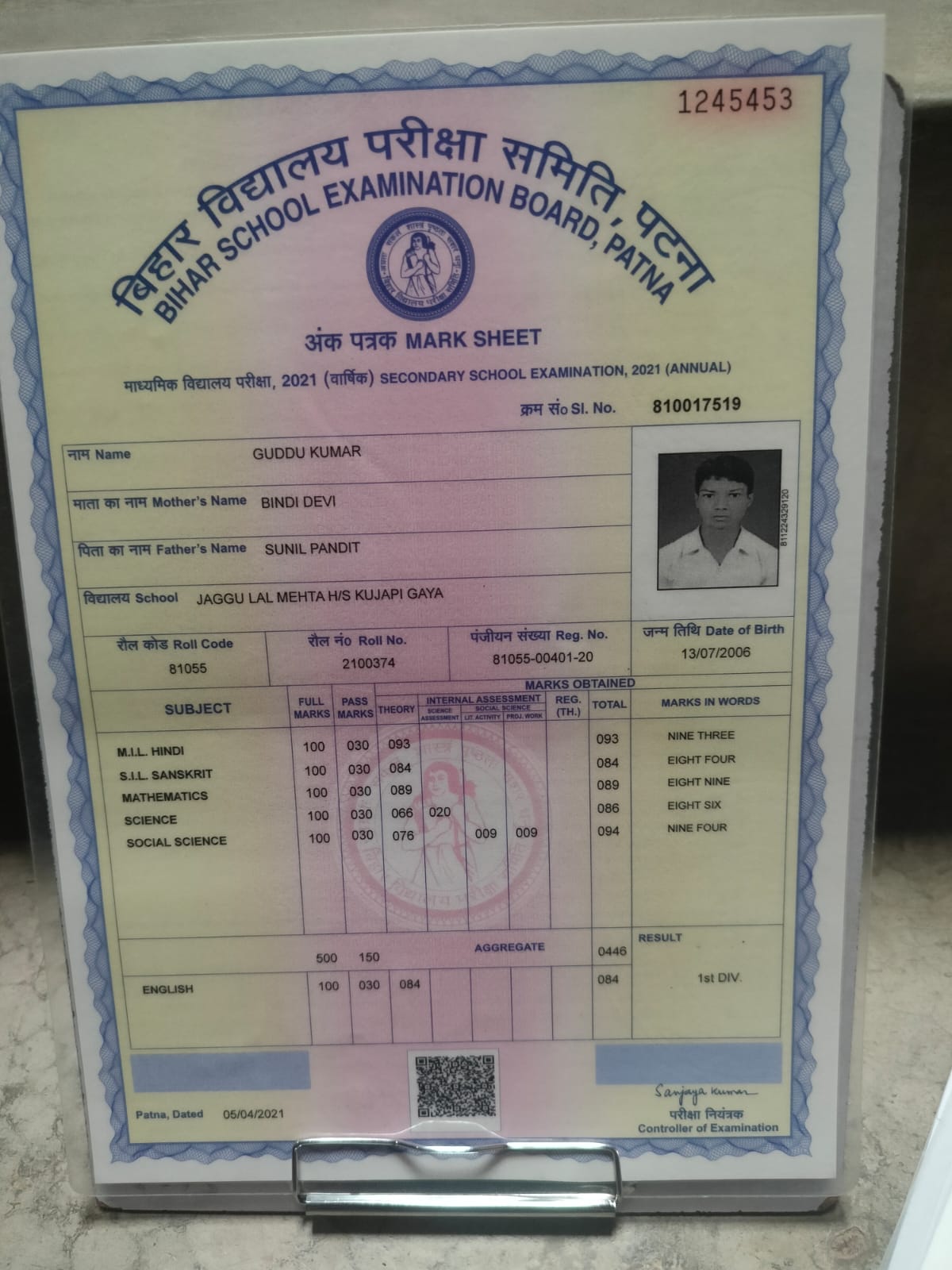 | Exam | Full Marks | Pass Marks | Marks Obtained |