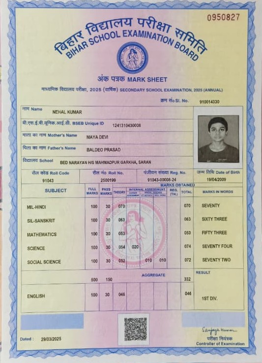 | Exam | Full Marks | Pass Marks | Marks Obtained |