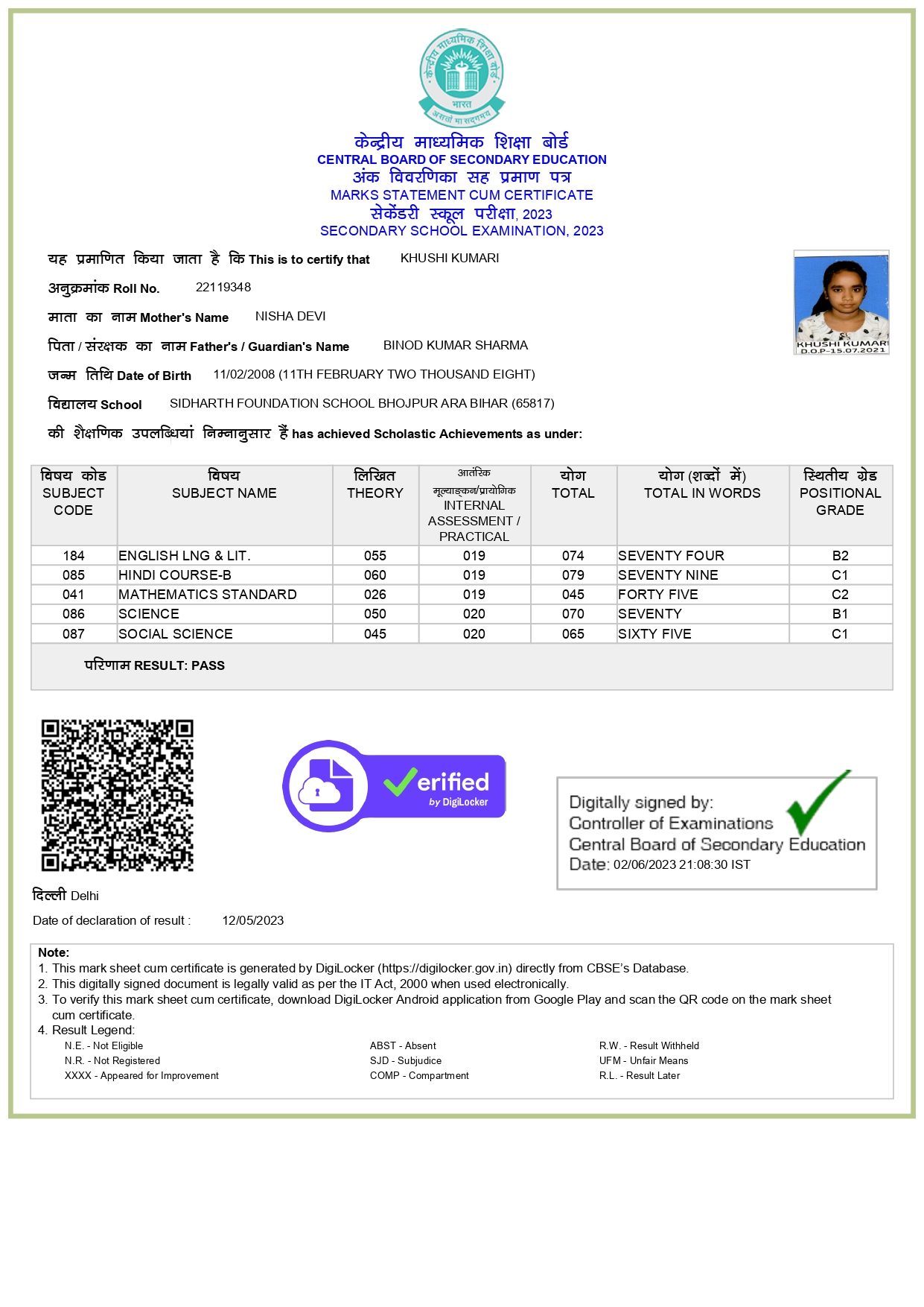 | Exam | Full Marks | Pass Marks | Marks Obtained |