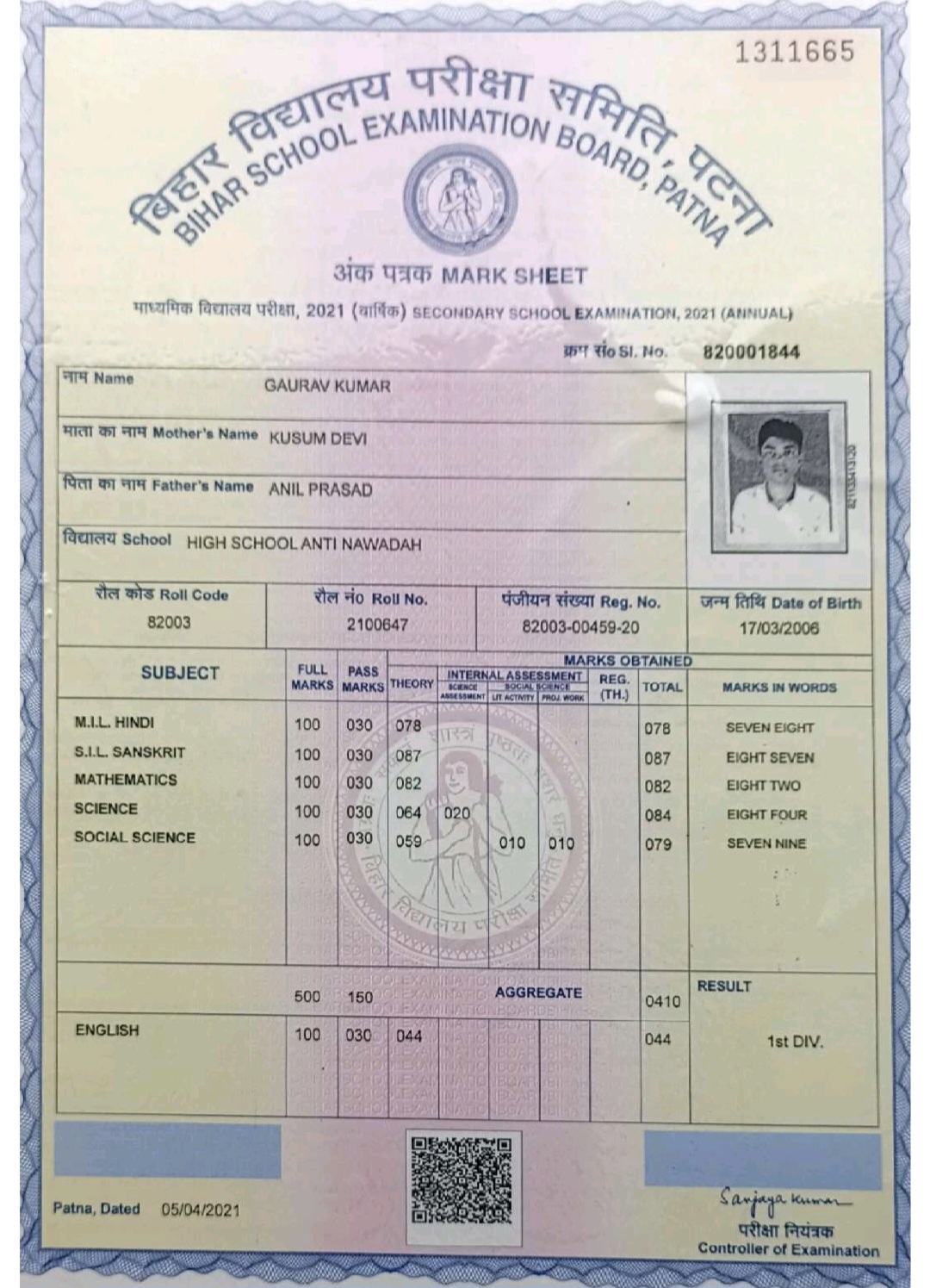 | Exam | Full Marks | Pass Marks | Marks Obtained |