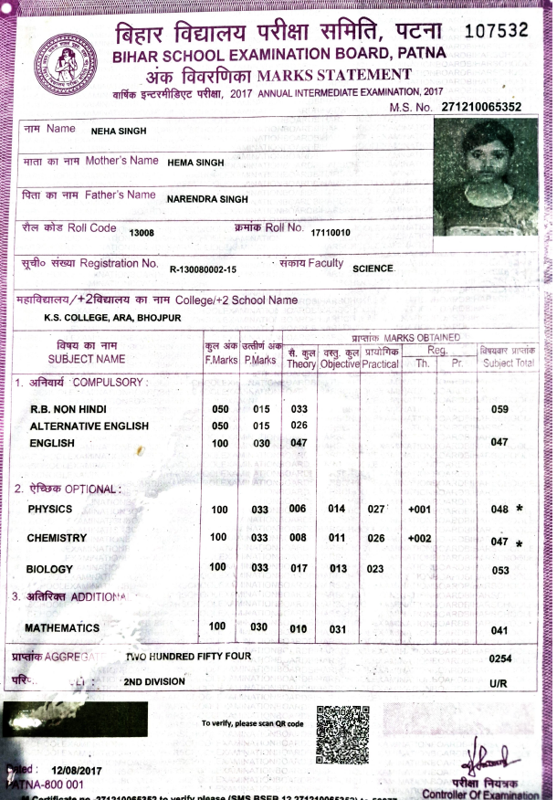 | Exam | Full Marks | Pass Marks | Marks Obtained |