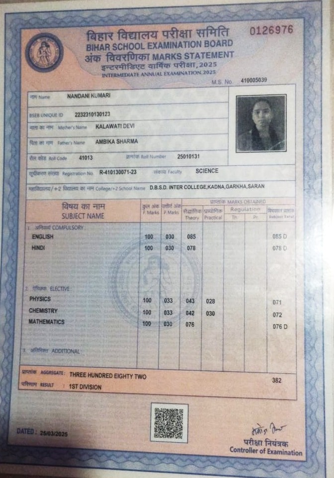 | Exam | Full Marks | Pass Marks | Marks Obtained |