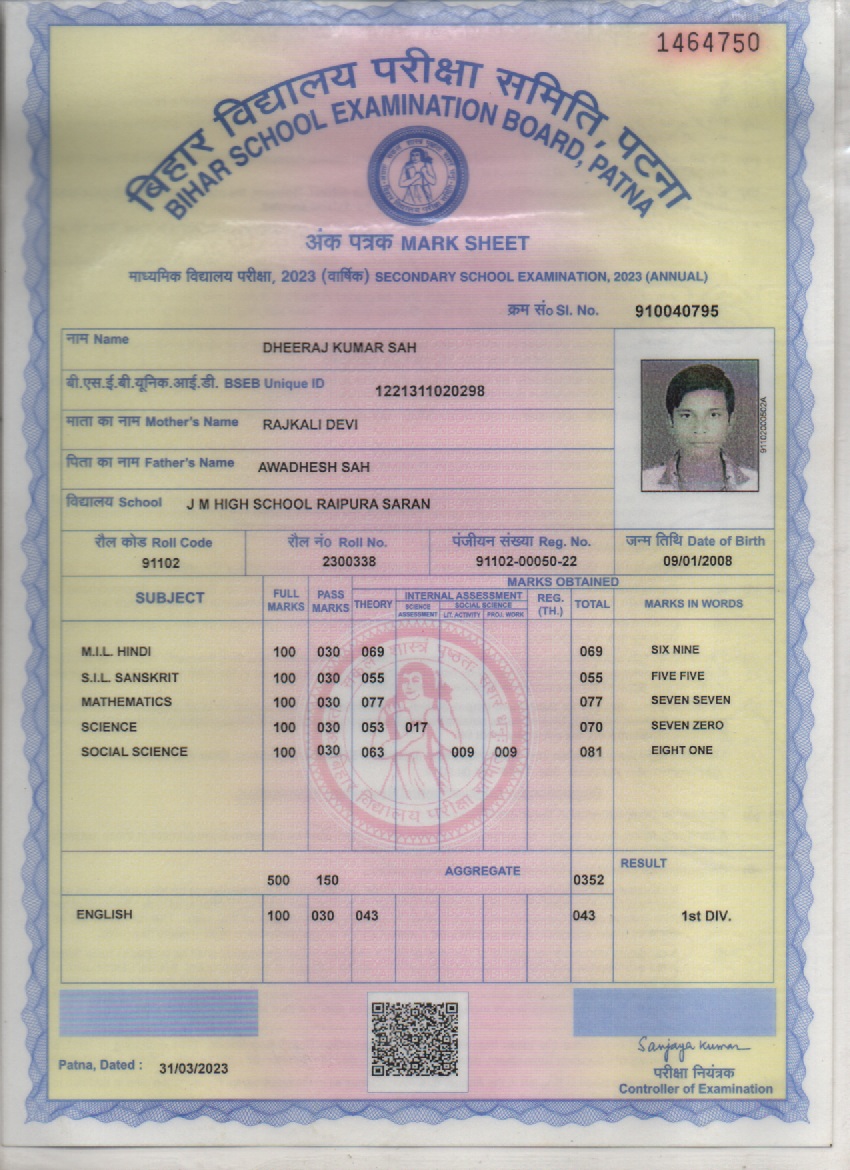| Exam | Full Marks | Pass Marks | Marks Obtained |