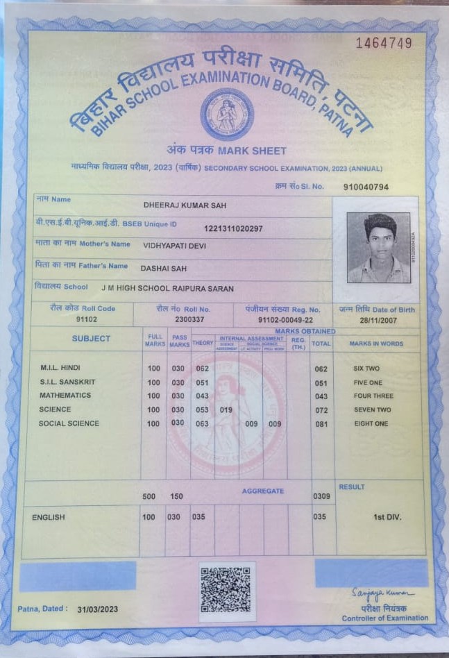 | Exam | Full Marks | Pass Marks | Marks Obtained |