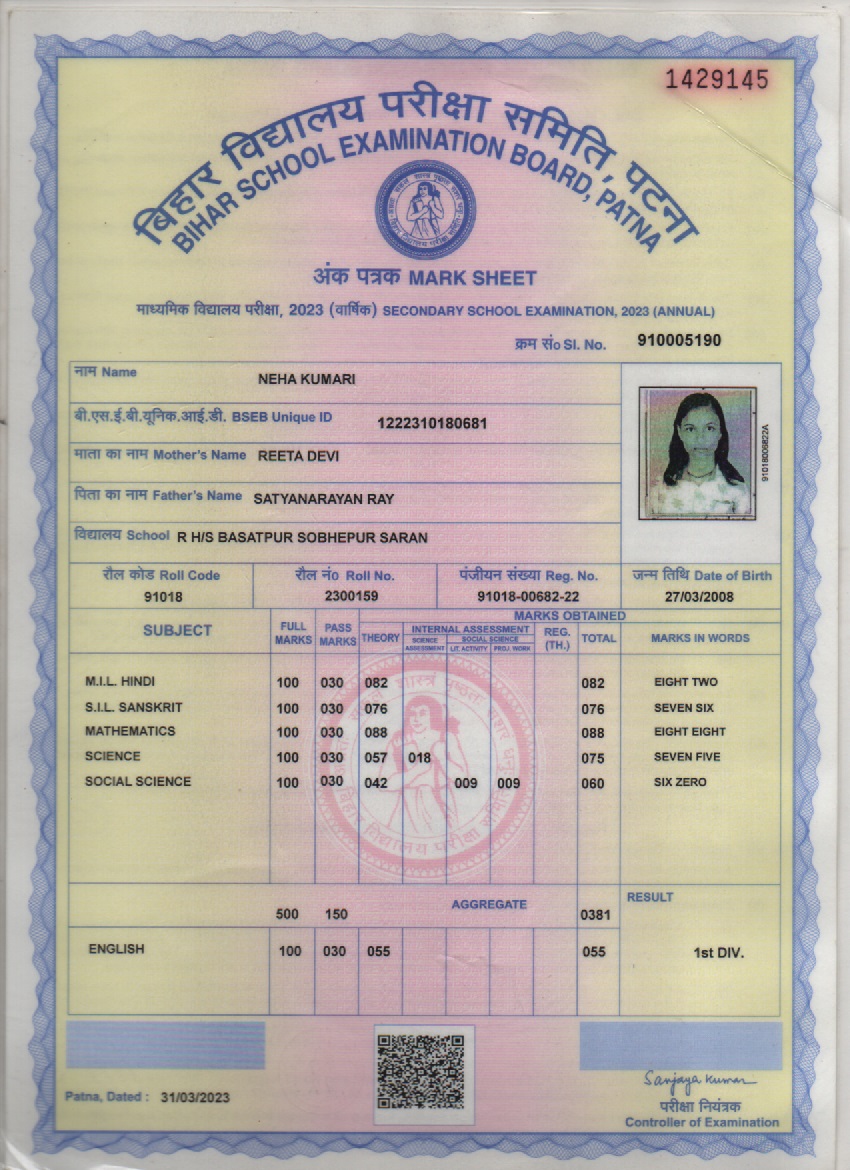 | Exam | Full Marks | Pass Marks | Marks Obtained |