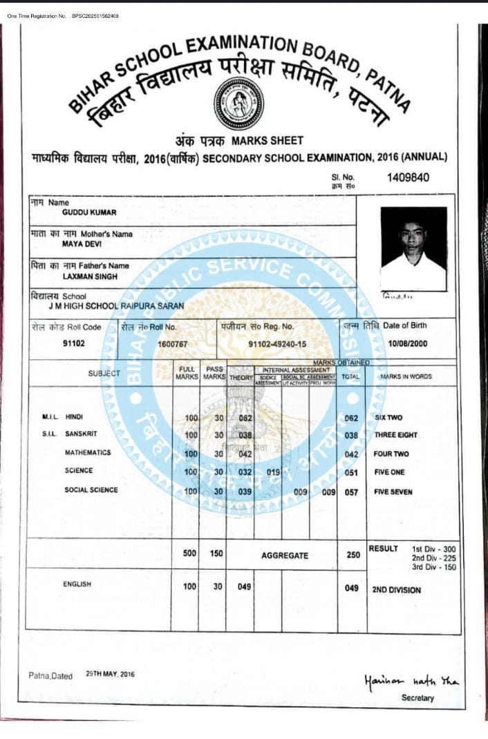 | Exam | Full Marks | Pass Marks | Marks Obtained |
