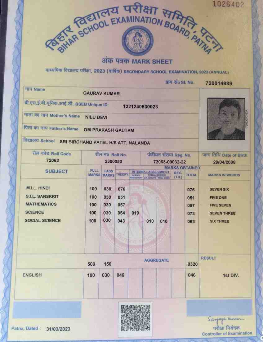 | Exam | Full Marks | Pass Marks | Marks Obtained |