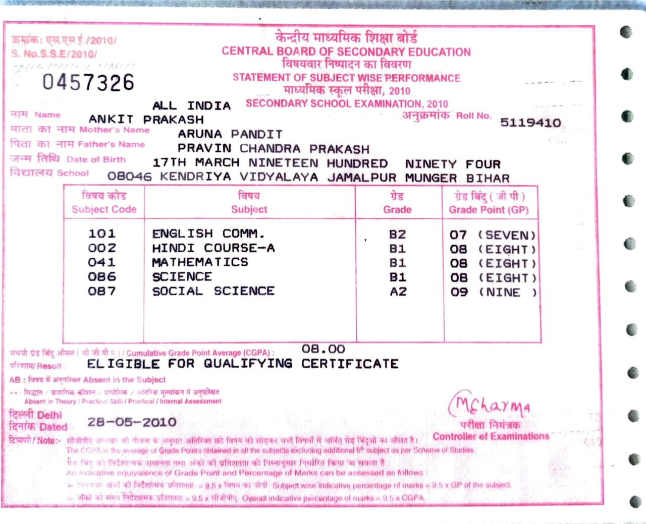| Exam | Full Marks | Pass Marks | Marks Obtained |