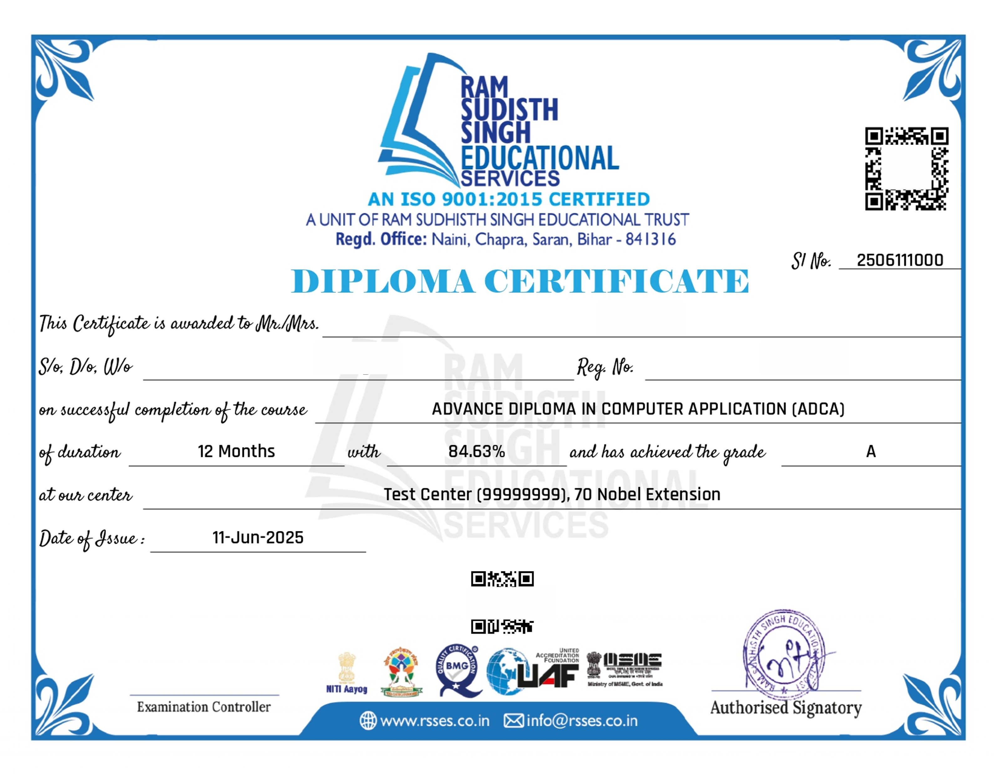 Certificate Sample / Ram Sudisth Singh Educational Services